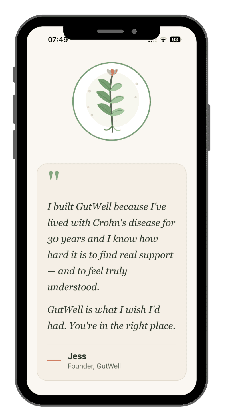 This app was built from 30 years of lived experience, for every person who has ever felt lost, alone, or unheard with a gut condition.